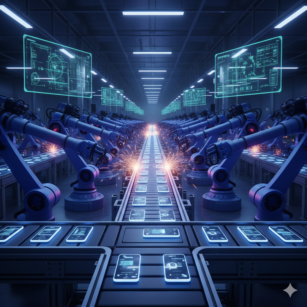 - 1초에 스마트폰 60대 생산 (인간 공장 대비 250% 효율)