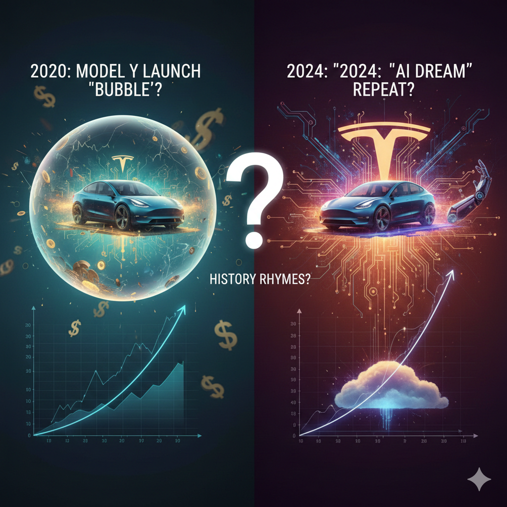 게다가 2020년 모델 Y 출시 직전으로 돌아가 보면, 비슷한 '버블' 소리가 들려오던 시절이 있었죠.